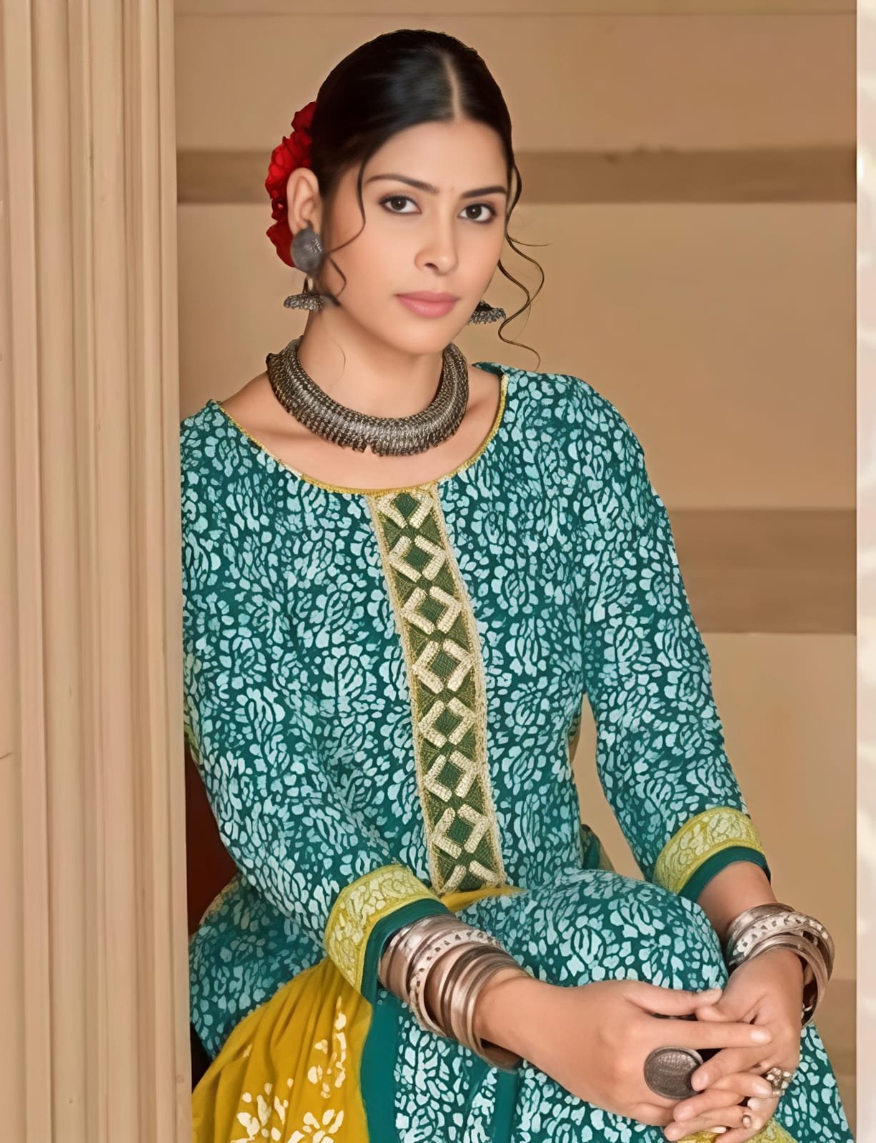 JT BATIK SPECIAL WORK SUIT MATERIAL 5002 Top :- 100% Pure Heavy Cotton With Neck Work And Daman Lace (2.40Mtr Approx) | Bottom :- 100% Pure Heavy Cotton (2.00Mtr Approx) | Dupatta :- Cotton Pallu Dupatta (2.25Mtr Approx) | Neck Design :- Premium Embroidery And Neck Work With Daman Lace