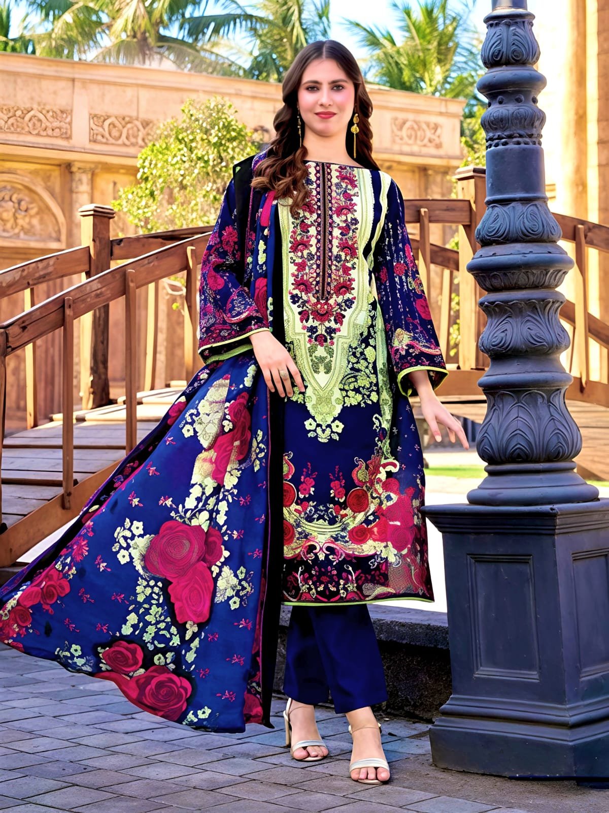SR V- 2 Ganesha Cotton Digital Print Karachi Salwar Suits material 2013 (NAVI BLUE)